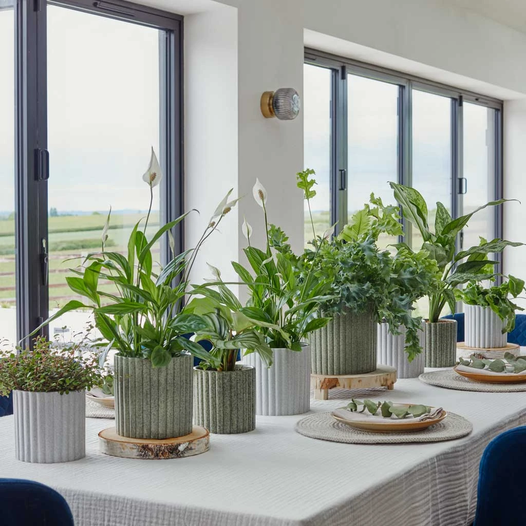This simple yet elegant cylindrical ceramic plant pot is the perfect way to add a touch of understated style to your home decor. The vertical ridges add shadow and texture, while the sage green speckled with brown glaze gives the pot a modern look and texture that will complement your favourite houseplants.
