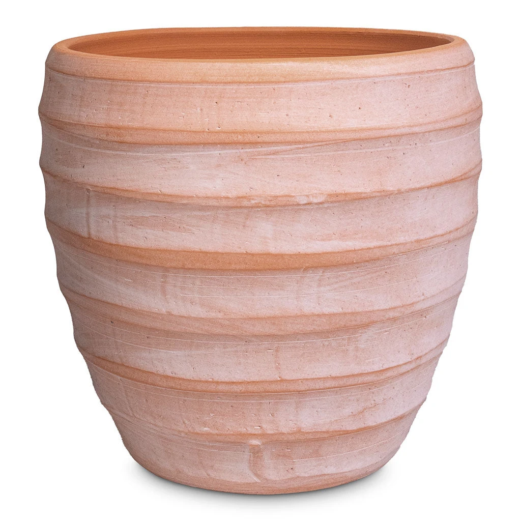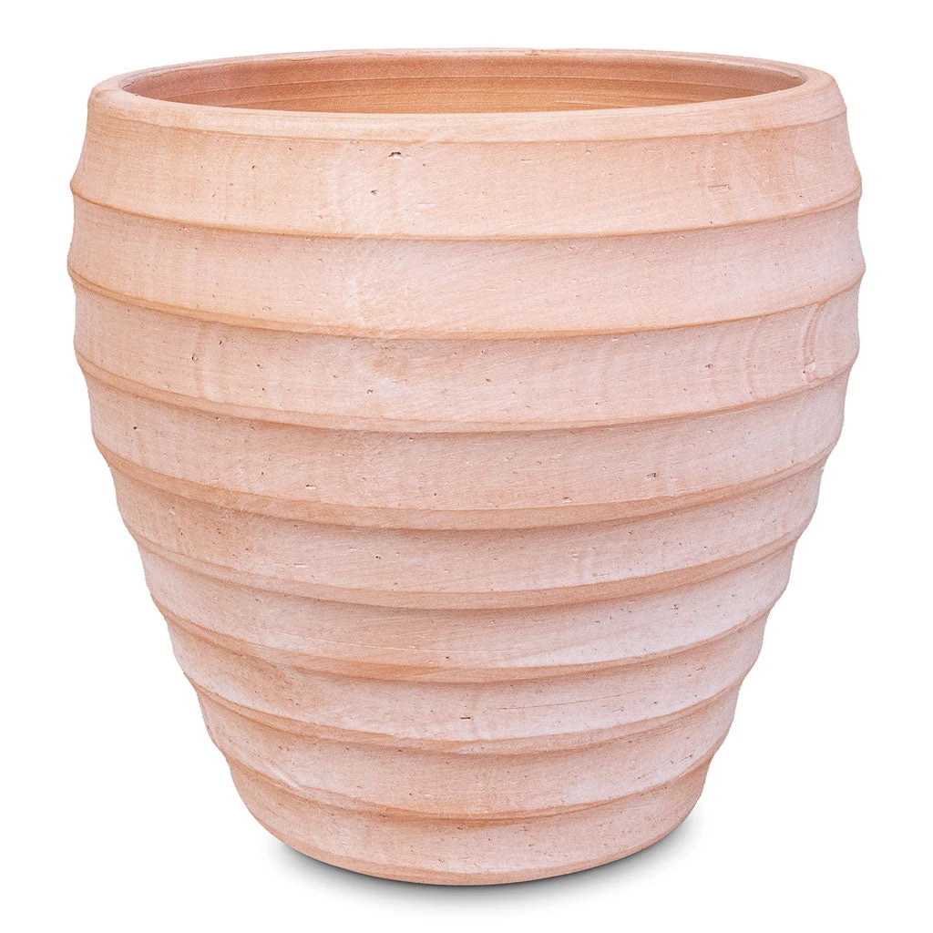 Rotund and ridged; Beatrice is a comfortable classic with a contemporary twist. Horizontal ridges encircle the timeless terracotta style, giving texture and distinction to your greenery. This pastel little number is perfect to present your plants.