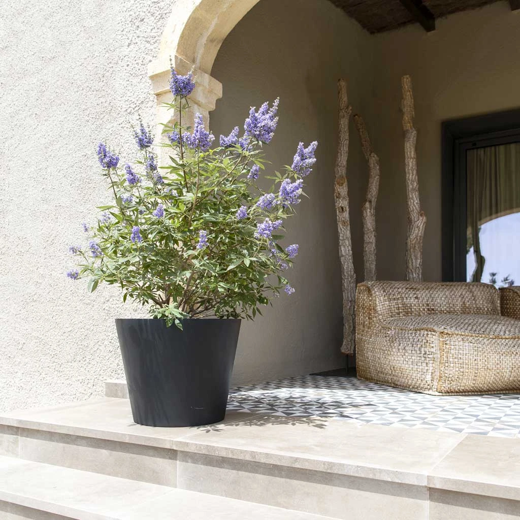 The simplicity of the natural collection is its defining feature. These large yet lightweight planters’ smooth shapes and matte black stone finish make them a perfect canvas for displaying your favourite plants, both indoors and outdoors.