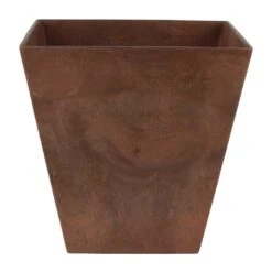 The Ella artstone planter has a modern tapered square shape with a rusty oak matt stone effect finish.