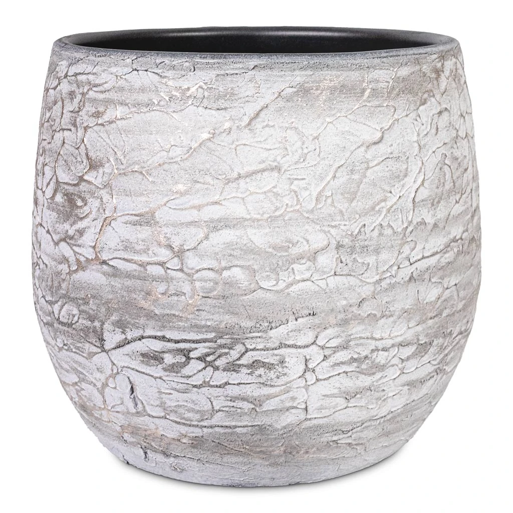 Looking for a neutral aesthetic for plant displays, that brings together contemporary interior styling? The Evi antique silver plant pot delivers with classic lines and silver veining wrapped around layers of smoky mist.