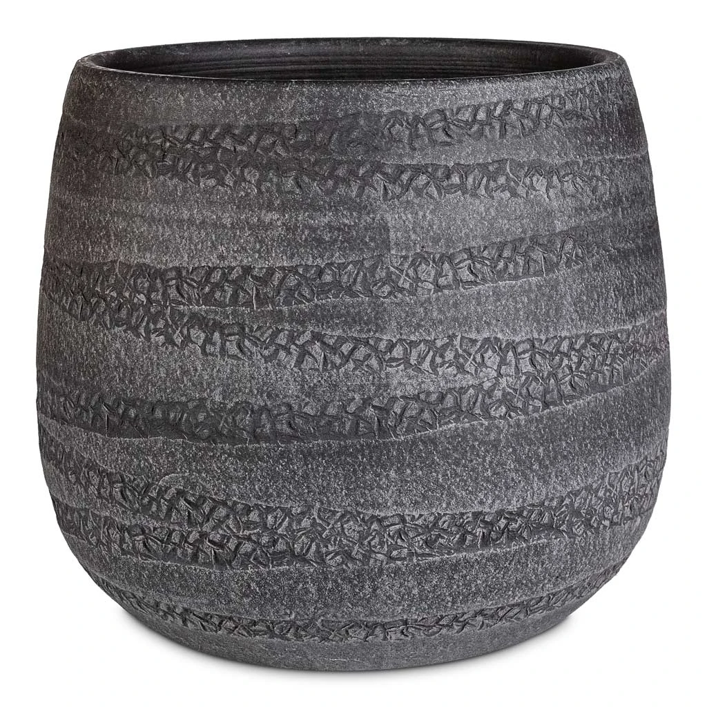 Grey and grooving – the Joyce plant pot boasts hand-carved textures and intertwining tones. Mottled, minimalist and modern for homes and offices alike.