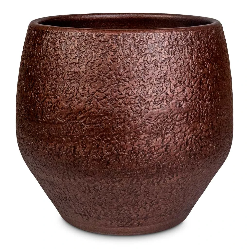 Create a serene space for you and your foliage friends with the Noor plant pot collection. The elegant, curvaceous silhouette is enhanced by the tactile textured rich chocolatey surface. The perfect balance of opulent velvet brown with a warm metallic sheen.
