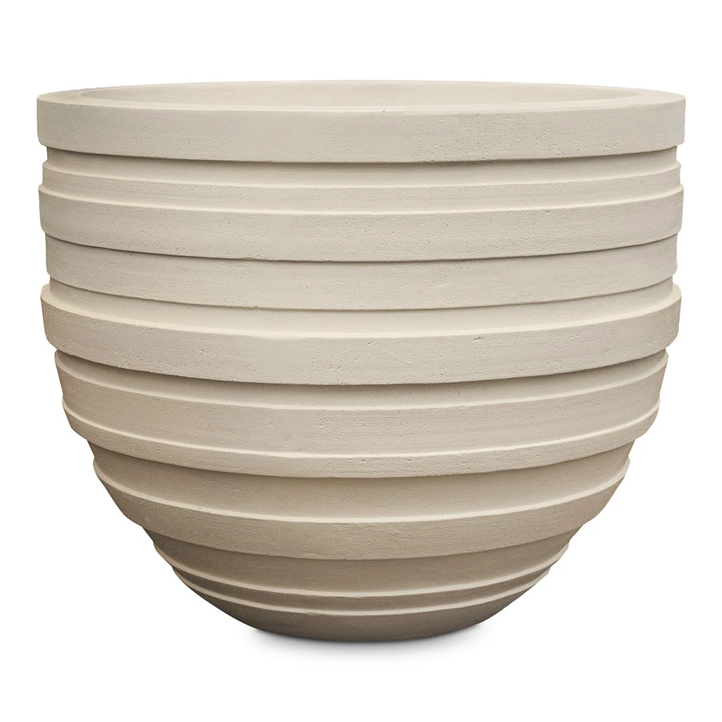 The Junar planter takes statement greenscaping to the next level with its handmade and contemporary banded design in a matt ivory finish. Weatherproof coatings ensure it has UV and frost protection built in for both indoor (with a liner) and outdoor use.