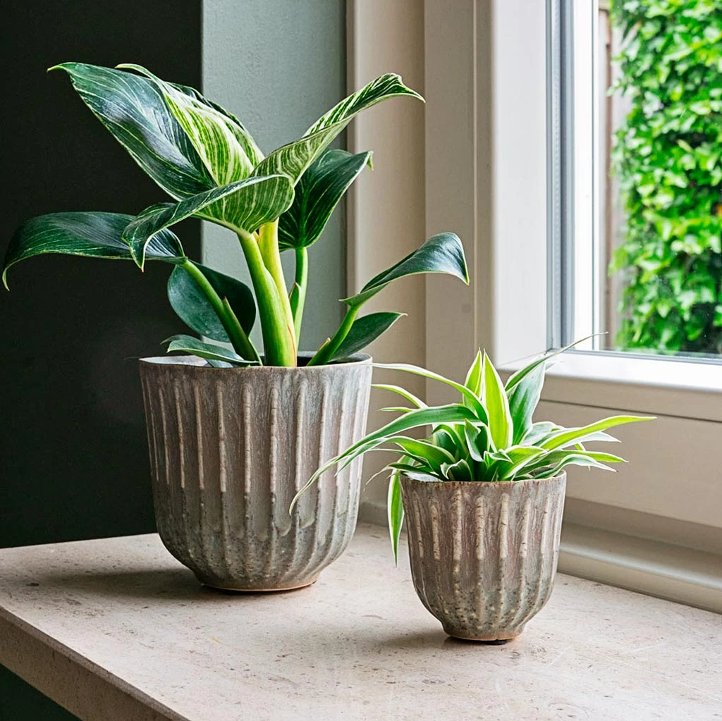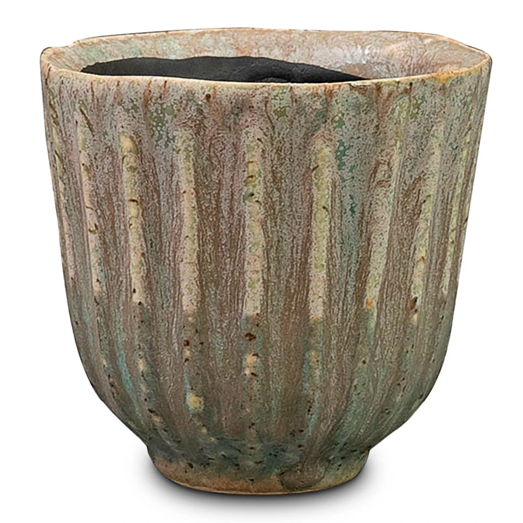 Head back in time to the roaring twenties with a touch of art deco elegance from the Roger plant pot. Stroll down the promenade with Flutey Tutti styling and a vintage two tone sea green glaze meeting a sandy beachscape for refined plant displays.